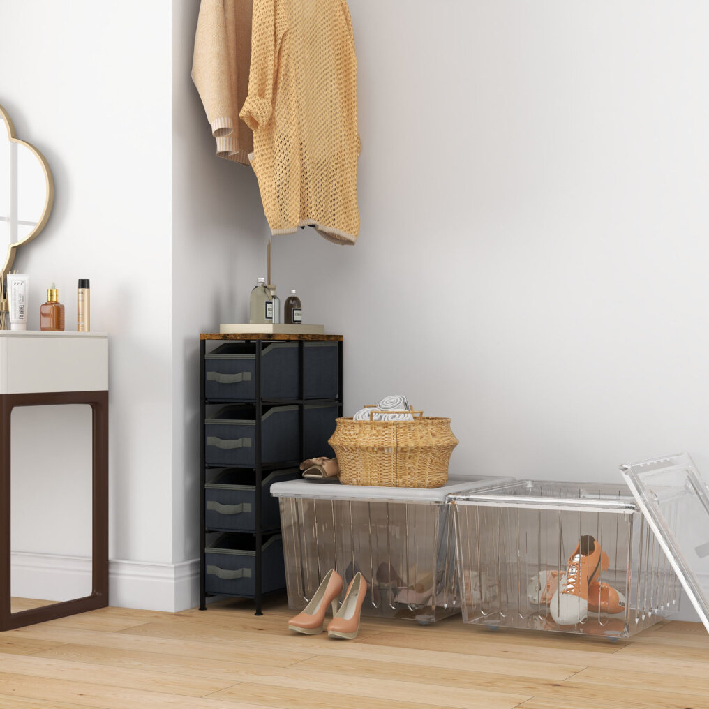 ● Supported by Sturdy Metal Frame: The industrial storage organizer consists of rustic MDF shelf, black fabric drawers and dark metal frame, which looks stylish and can endure longtime use. In addition, the robust metal frame provides reliable support to the drawers. And it is fitted with adjustable foot pads for extra stability.