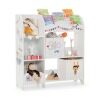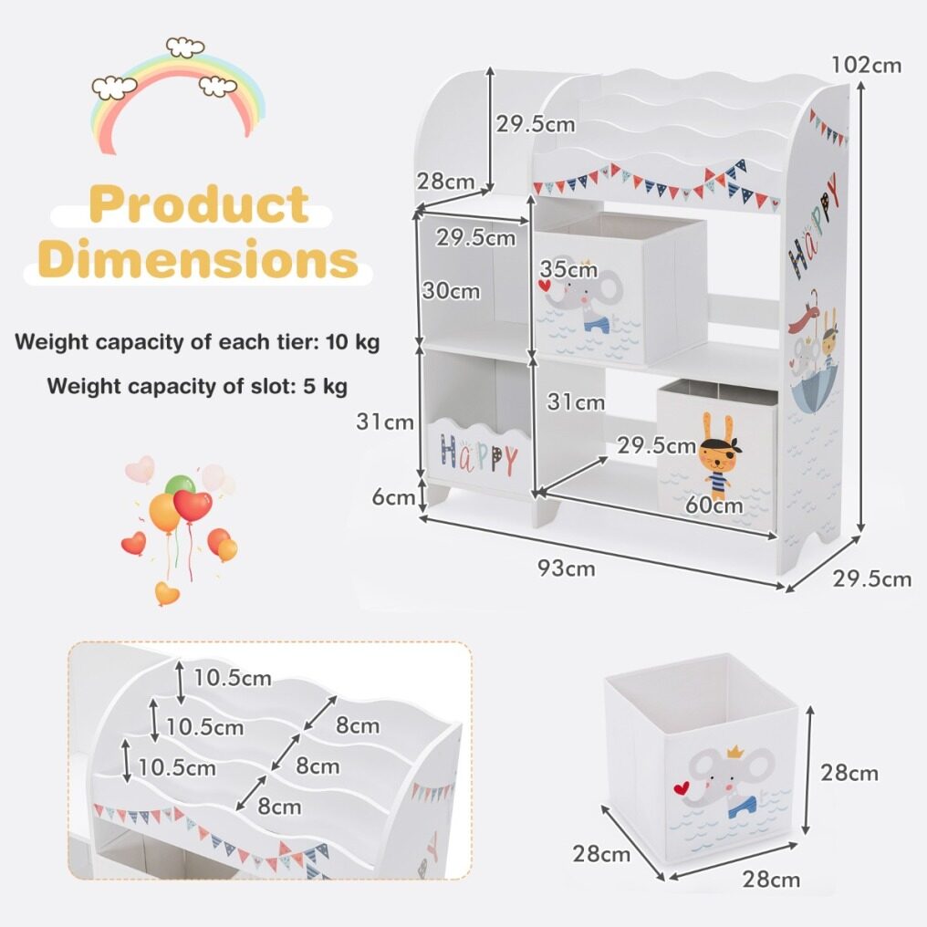 Premium Materials & Humanized Details: Made of high-quality engineered wood, the kid's storage unit with EN71 certification features high stability and durability. In addition, the back of the cabinet is designed with anti-falling baffles which prevent items from dropping. The waterproof surface is easy to clean with a damp cloth.