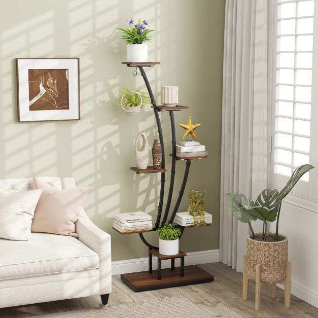 ● Multifunctional Design: More than just a plant stand, this stylish unit doubles as an attractive display shelf. Its unique curved shape and ample shelving make it perfect for showcasing potted plants, books, and decorative items, while being an ideal gift for plant lovers.