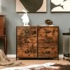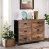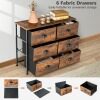 Featuring 6 fabric drawers and a spacious tabletop, this 3-tier dresser offers roomy storage space for your clothes and other home supplies. The drawers are equipped with metal handles for smooth opening and closing. The steel frame with X-shaped bars enjoys better stability. Also, the steel frame is built with powder coating to increase rust resistance for long time use. Besides, you can fix the dresser to the wall if needed and the anti-toppling device is included in the package. The non-woven fabric drawer is built with an MDF top to present a good-looking match with its rustic style. The assembly is easy with instructions and foldable drawers. This 6-drawer dresser is perfect for the living room, bedroom, hallway, entryway and more.