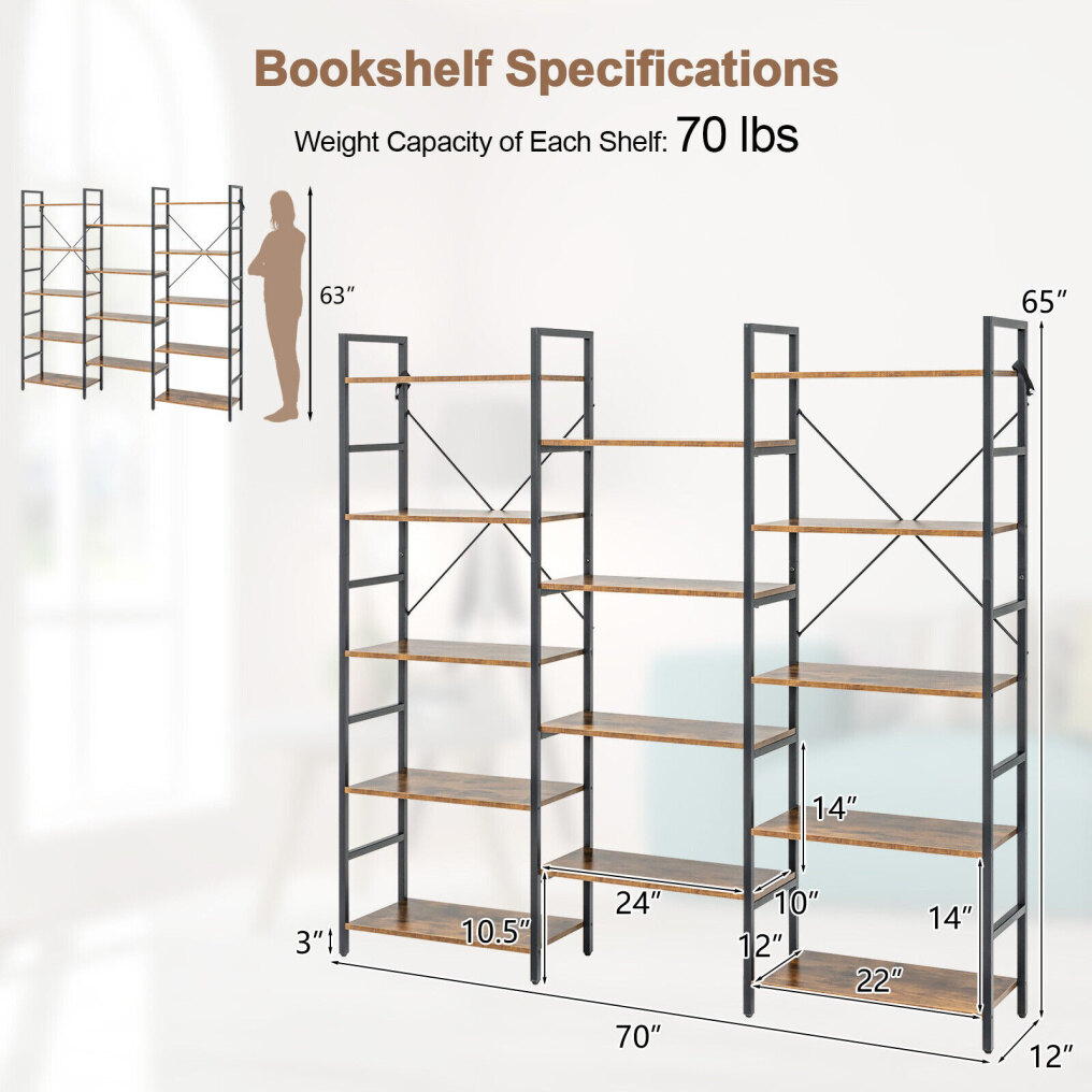 ● Easy Assembly Bookshelf: Shelf size: 66.9 "W x 12.2 "D x 67.5 "H inches. The package comes with detailed instructions and all the accessories you need. You just have to follow the instructions and you can finish the installation in a short time. In addition, the surface of the storage rack is smooth and waterproof, which makes it easy for you to clean and maintain it.