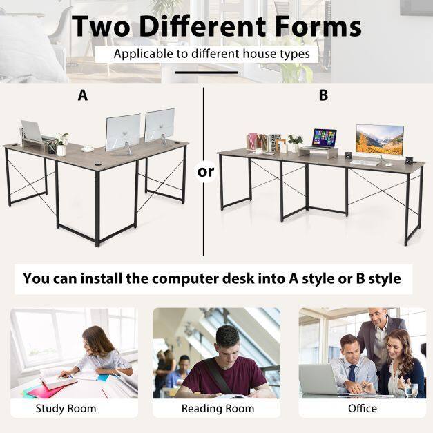 ● 2 Desk Shapes: To accommodate different house types, the 59" x 59" x 29" L-shaped desk can be transformed into a 95" x 24" x 29" long desk. And regardless of the shape, the reversible computer desk provides great space so that 2 people can work at the same time.