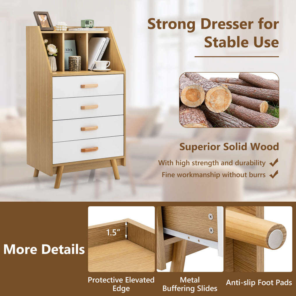● Wide Use and Easy Assembly: The 4-drawer dresser shows a simple design, which will coordinate well with many decoration schemes. Except for a chest of drawers, it can also work as a storage cabinet or bookcase as needed. More surprisingly, its assembly is quite simple and only cost a short time.