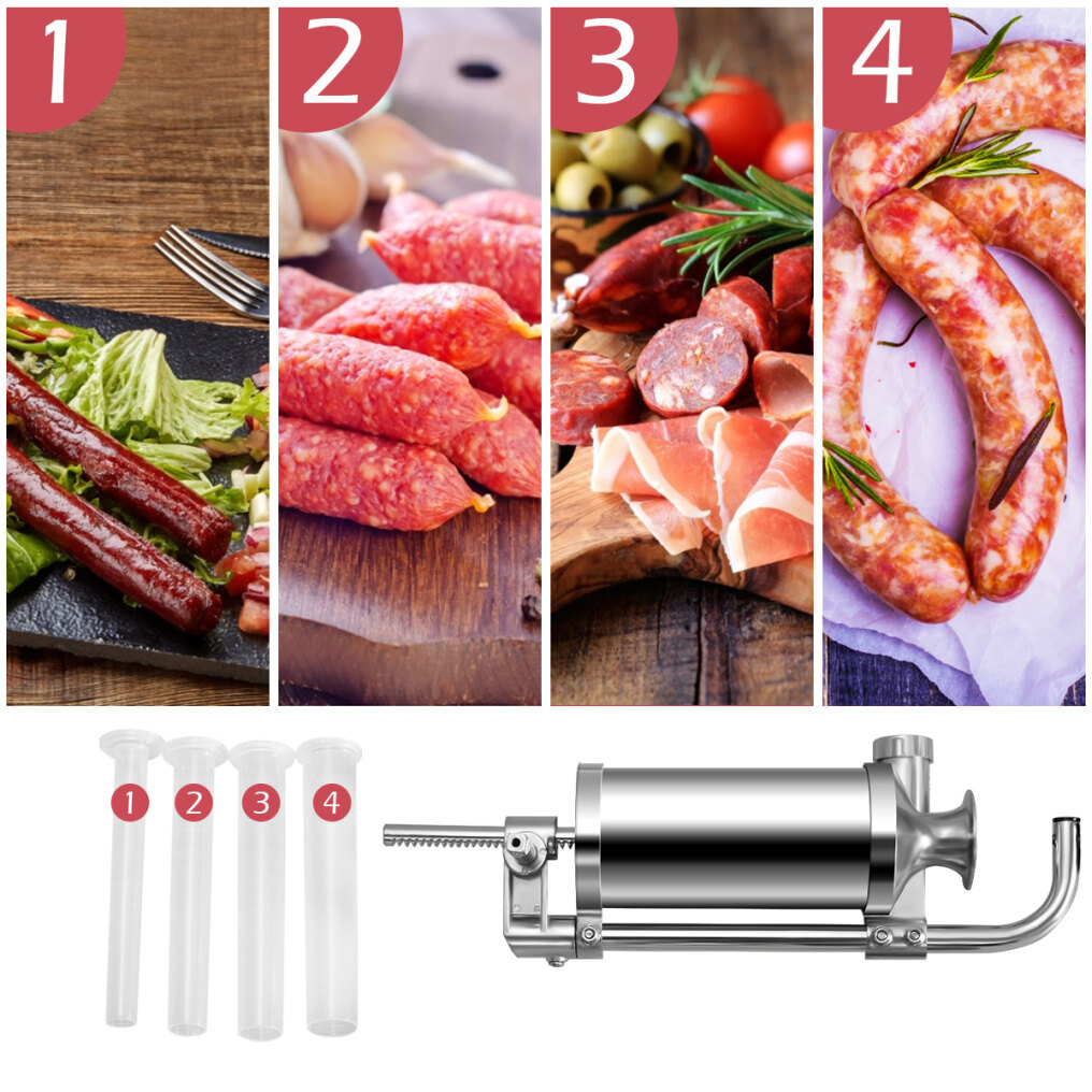 Plastic Nozzles Includ: Includes 3 individual sausage casing stuffing tips, ɸ0.6", ɸ0.7", ɸ0.9"(Φ15 mm,Φ19 mm,Φ22 mm).