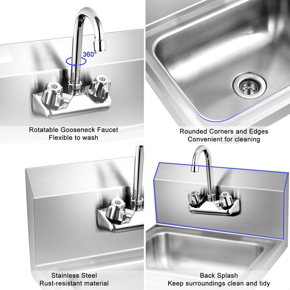 ● Back Splash and Rotatable Faucet: Featuring high backsplash, the stainless steel sink aims to avoid making a mess and also keeps surroundings away from dirty water. Apart from that, the gooseneck facet that can be rotated 360 degrees offers convenient and flexible access to wash and prepare food.