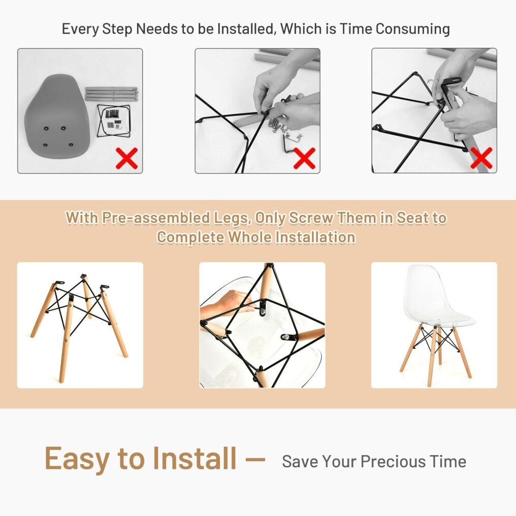 Make a timeless addition to your home decoration with these 4-piece dining chairs! With mid-century modern design, these shell plastic chairs are easy to blend with your dining room, living room, bedroom and other places. Apart from beautiful appearance, the structure is important as well. Hence, the solid beech wood legs with sturdy steel frame make these chairs sturdy enough to hold up to 150kg for each of them. Considering your comfort, these kitchen armless chairs feature curved backrests and large seats in order to bring optimal coziness for you. What’s more, the installation is very easy for time-saving.