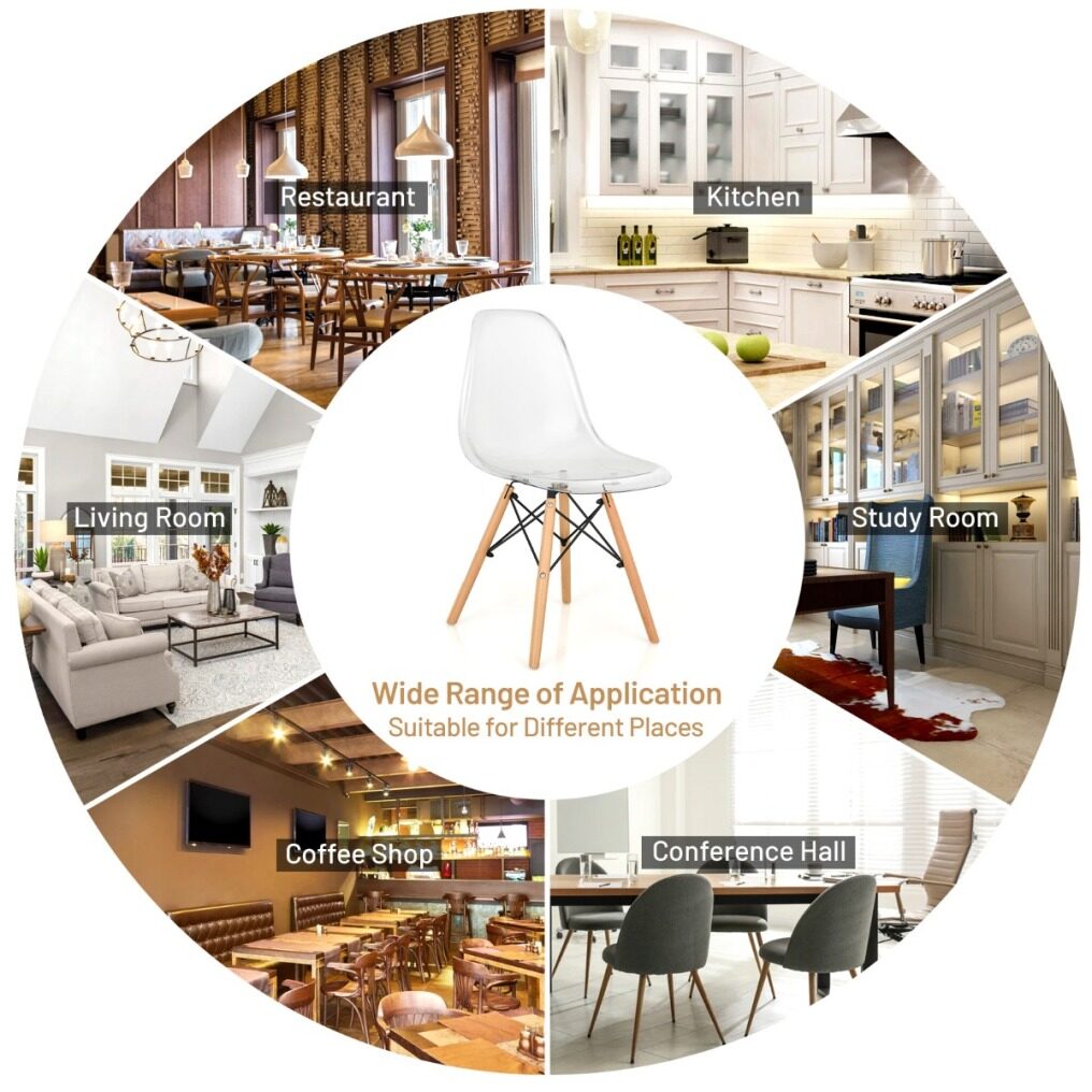 Mid-century Modern Side Chairs: These dining chairs feature transparent seats with smooth lines, which make them look special than other common kitchen chairs. At the same time, the mid-century modern design blends seamless with your home decoration, so you can use them in your dining room, living room and bedroom, etc.