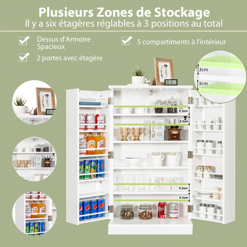 Multi-Tier Design: Undoubtedly, multi-tier shelved design is a good way to extend storage space and sort diverse items. With two 6-tier shelves and a 5-layer compartment, the kitchen pantry offers great hidden storage space. Plus, six 3-position adjustable shelves are evenly located inside for customized arrangement.