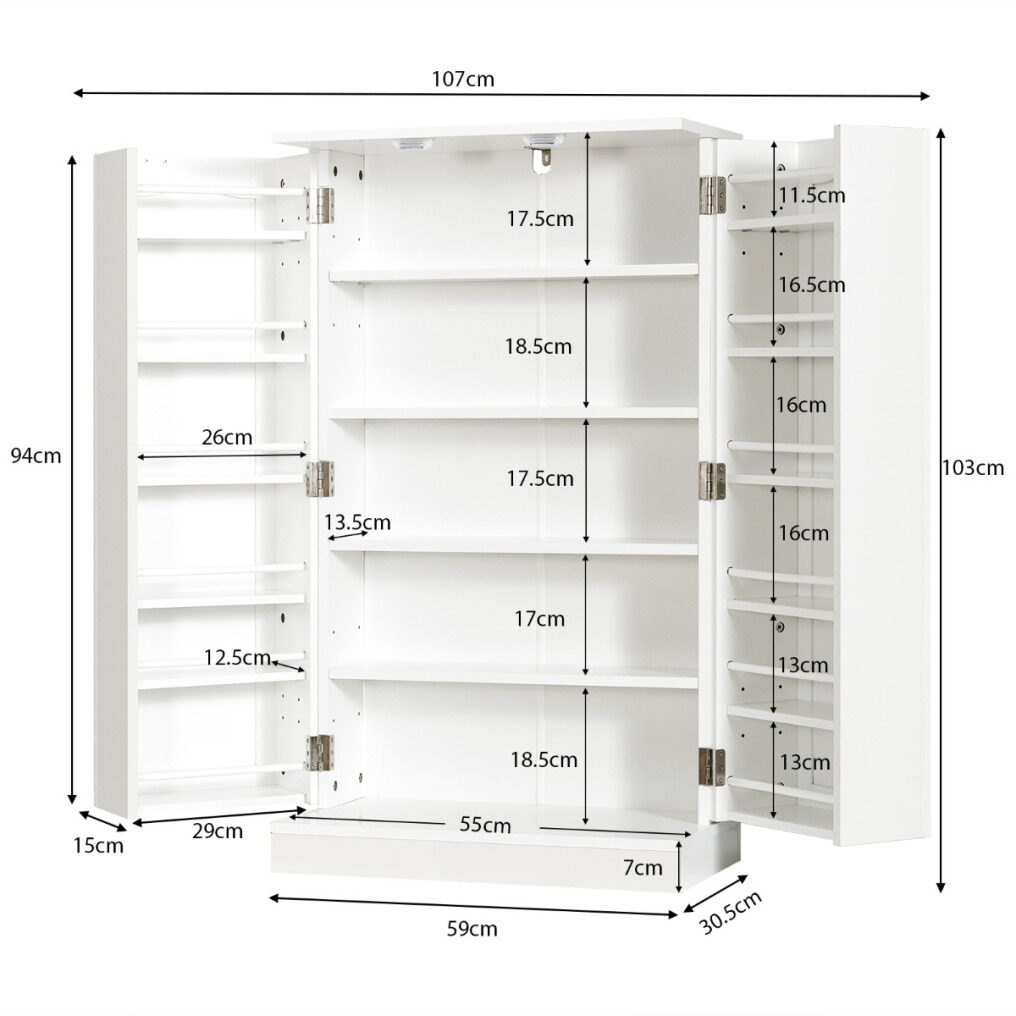 Versatile Pantry Cabinet: Measuring of 59cm x 30.5cm x 103.5cm, the organization cabinet is applicable to almost any rooms. You can place the floor cabinet in living room, dining room, entryway, etc, for a functional storage option. According to the actual situation, different items, such as tableware, drinks, foods, etc, can be stored inside.