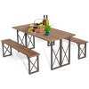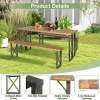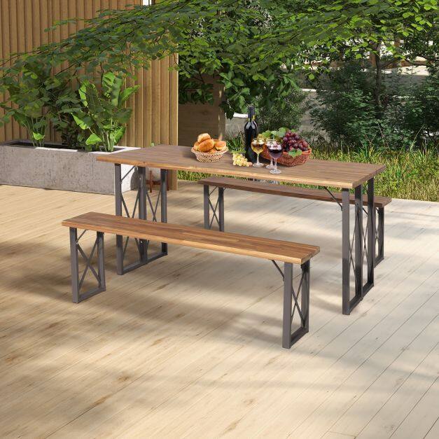 ● Space-saving Design: There is ample room under the table, making it convenient for you to store 2 benches when not in use. With compact size, this patio picnic table and bench set is ideal for places with limited space. Dimension of table: 67" x 30.5" x 29.5" (L x W x H), dimension of each bench: 59" x 10" x 18" (L x W x H).