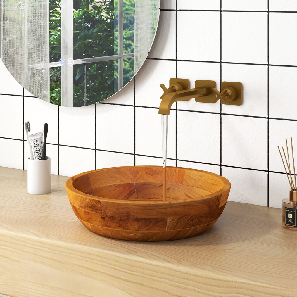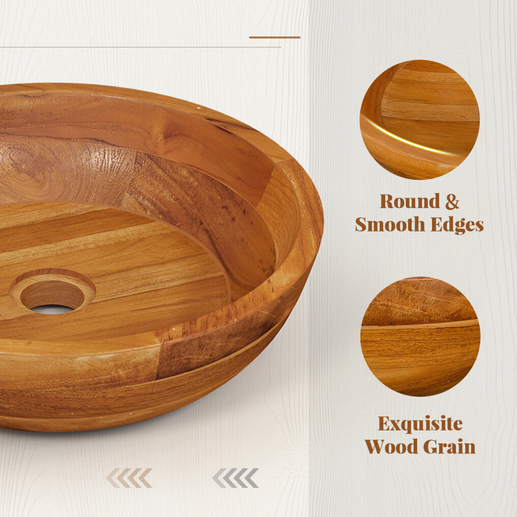 ● Super Easy to Maintain: The water-resistant vessel sink can be easily wiped clean with a damp cloth. Additionally, you can also repolish teak oil to all surfaces of the vessel to extend its service life.