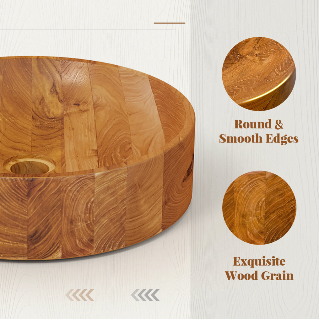 ● Super Easy to Maintain: The water-resistant vessel sink can be easily wiped clean with a damp cloth. Additionally, you can also repolish teak oil to all surfaces of the vessel to extend its service life.