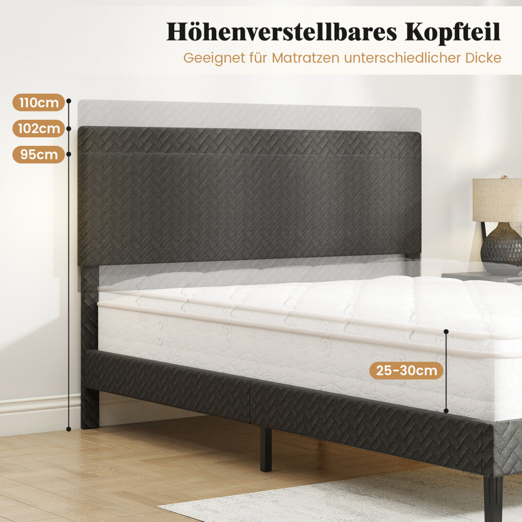 Height-adjustable headboard: This bed frame offers a headboard with 3 height options (95 cm-110 cm) to comfortably accommodate mattresses with a thickness of 25 cm to 30 cm. You can also adjust the height of the headboard to suit your individual comfort needs, for example, for reading or resting.