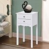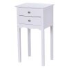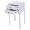 Constructed of high quality, non-toxic MDF material, this table is sturdy and reliable. Two slide-out drawers provide convenient space for placing small items. The beautiful black finish on the contemporary furniture will surely compliment any bedroom decor.