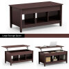 This interactive lift top coffee table combines elegant outlook and useful functions for people.