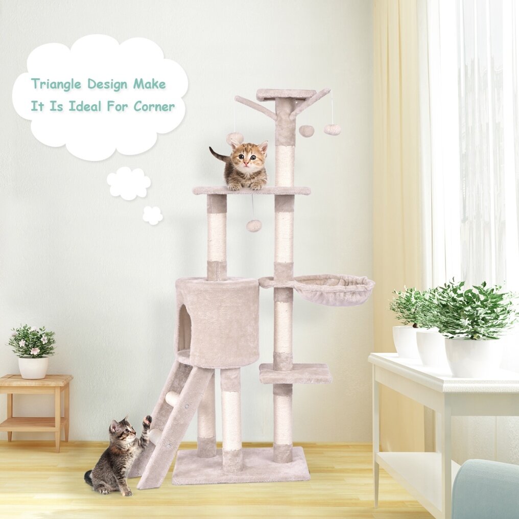 - Beautifully designed with fun activities for your cat to scratch, climb, jump, play and even to sleep or lounge on