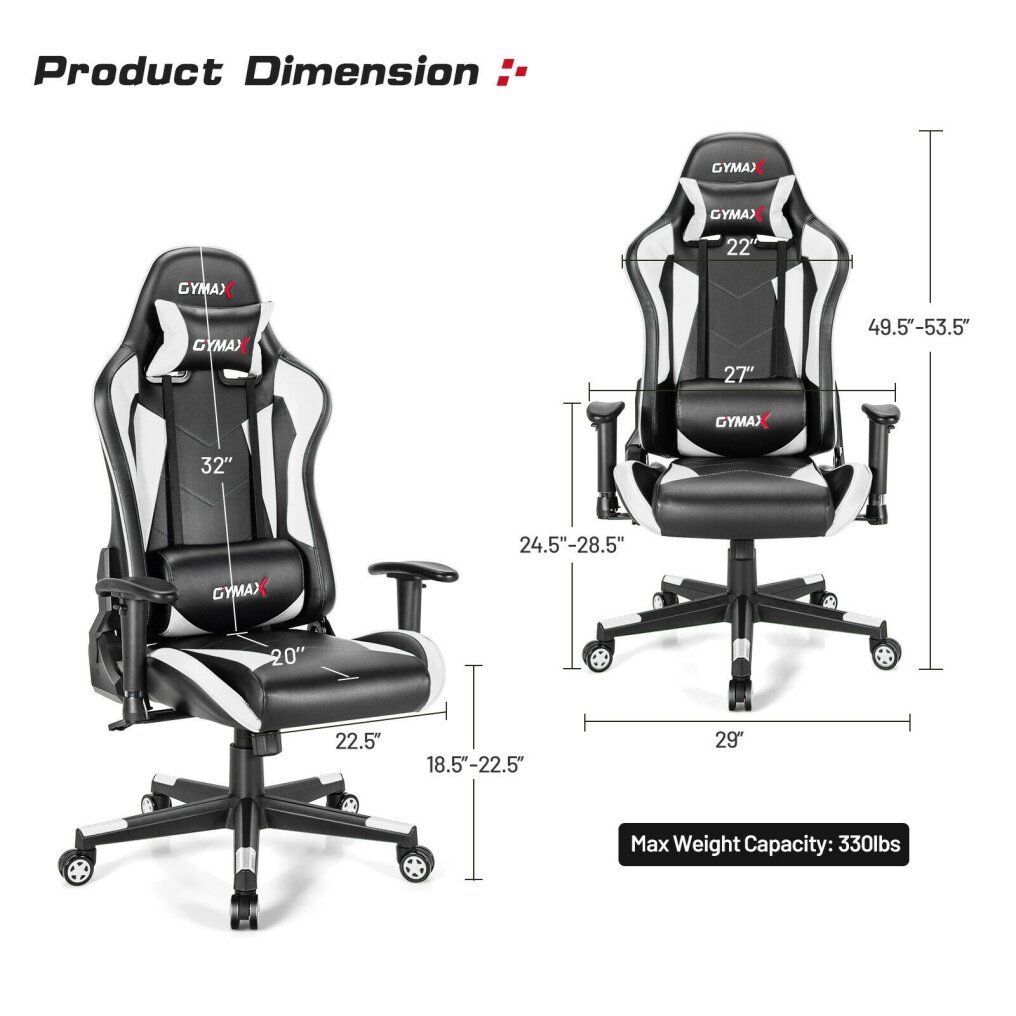 ● Sturdy Structure and Selected Materials: Supported by a heavy-duty metal frame, this gaming chair is built to last and can support up to 330 lbs. Padded with thick high-density sponge and covered with skin-friendly PVC leather, this ergonomic gaming chair takes softness and comfort to a higher level.
