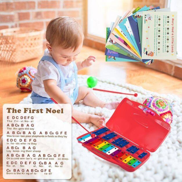 Children-friendly Design: This glockenspiel is specially design for children. The vivid color of notes can stimulate children' s vision while the easy-hold mallets allow kids use the glockenspiel simply and improve their hand control ability.
