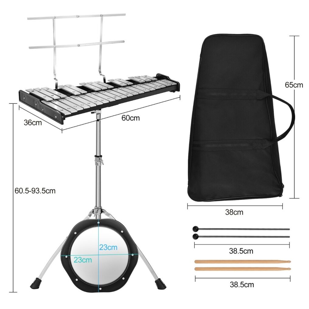 A Whole Set of Instrument: Our percussion xylophone is equipped with an adjustable stand, a music stand, a pair of bell mallets, an 20.32cm practice pad, a pair of wooden drumsticks and a carrying bag. You can get all you need to practice the percussion in the package, which really saves your time and energy.