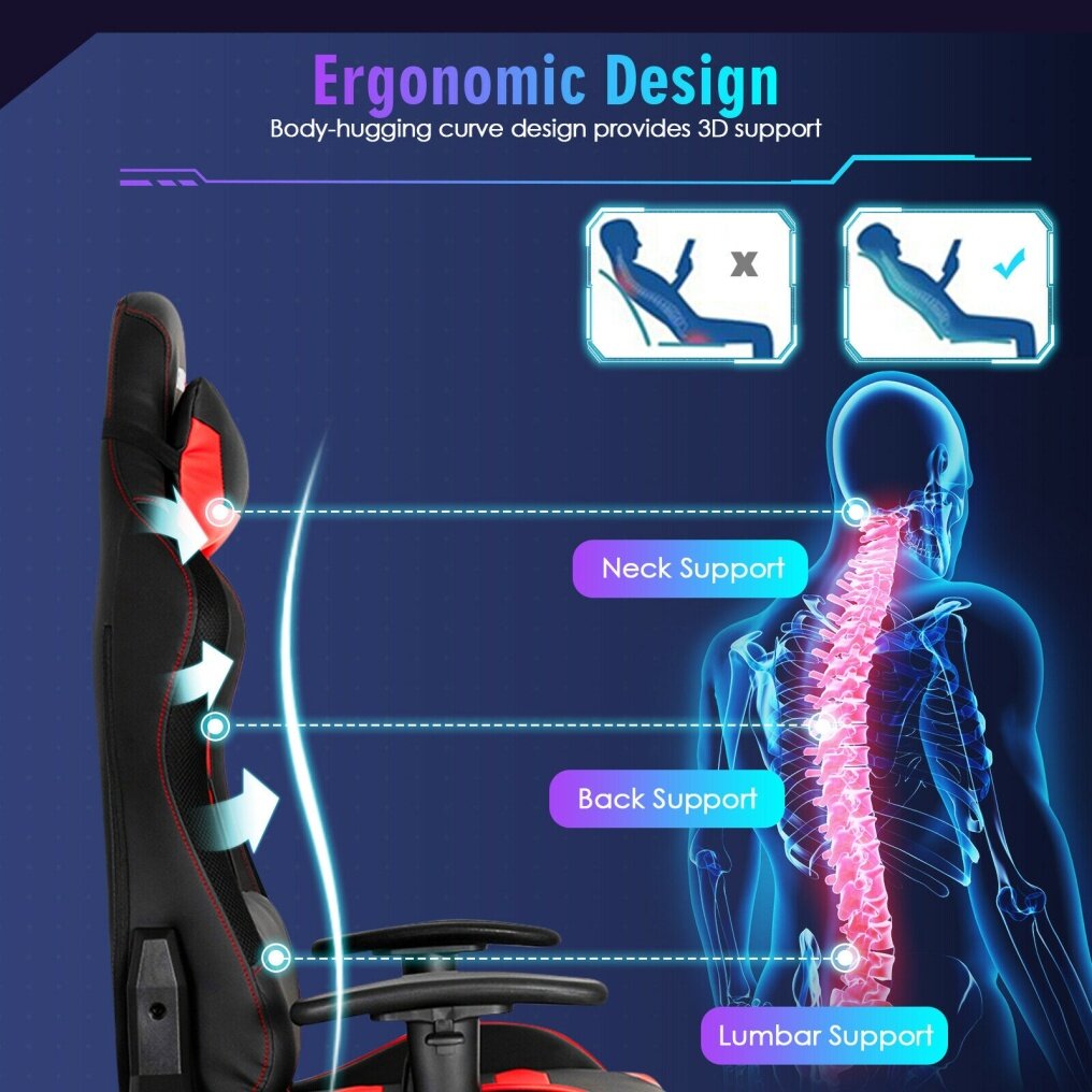 ● High Quality and Durable Materials: The soft cushion of this ergonomic gaming chair is filled with high-density sponge, which is not easy to collapse and can support your body better. In addition, the premium PVC leather surface is smooth, skin-friendly, waterproof, wear-resistant and easy to keep clean with damp cloth.