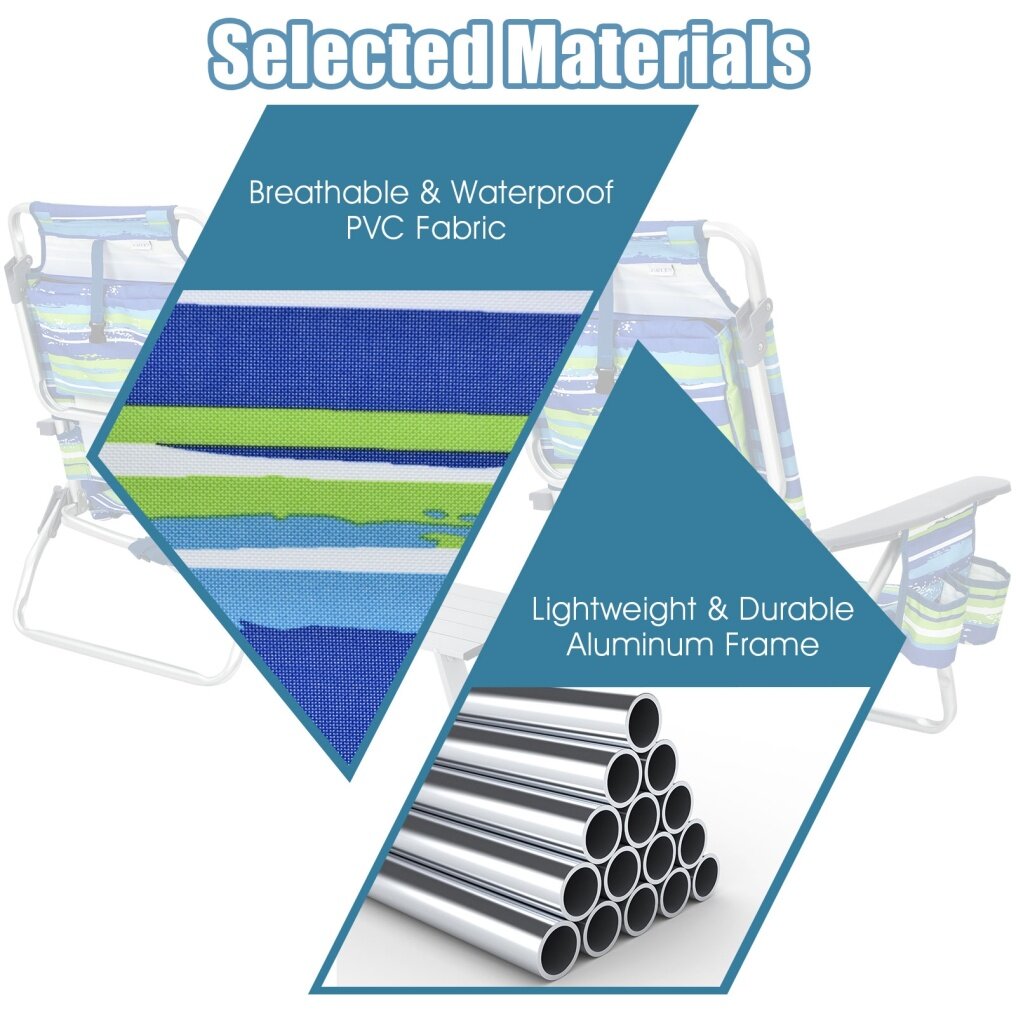 Adjustable Backrest: By lifting the armrests, the backrest of these beach chairs can be adjusted into 5 different positions, such as sitting up, reclining and lying flat, etc, greatly meeting your various requirements. Hence, you can read, chat with friend or sunbathing with ease.