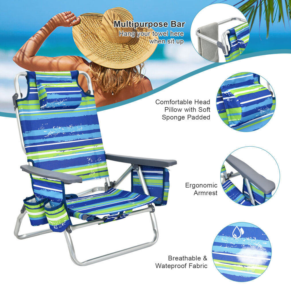Adjustable Backrest: The back height of the beach chair can be adjusted from 27.94cm to 83.82cm, so that you can choose a suitable angle for sunbathing, reading or chatting. Besides, the headrest with soft sponge padded offers a more comfortable feeling for sitting or lying down.