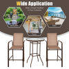 ● Sturdy Construction: Crafted of sturdy steel frame with powder coated, this patio bar set is rustproof and stable. Furthermore, the surface of the durable fabric is fast-drying. Thanks to these characteristics, the outdoor height bistro set is perfect for outdoor use. And the anti-slip foot pads ensure extra stability.