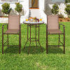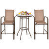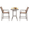 ● 3-Pece Patio Bar Set: In order to create a comfortable outdoor area for dining or chatting, this outdoor patio bar set is equipped with 2 bar stools and 1 tempered glass table, so you can enjoy outdoor leisure time with the one you loved, sharing the happy moment.
