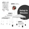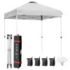 This commercial canopy tent offers you up to 6.6' x 6.6' shade, which is big enough to cover one table and several chairs. It also provides 3-level height adjustment to satisfy various requirements. The canopy top is wear-resistant and rainproof to support long time outdoor use. With the heavy-duty steel frame, the sun shelter is stable to stand in wind or rain. Use extra ground stakes, tie-down ropes and weight bags to further enhance its stability. All canopy parts are collapsible or detachable to be organized in the roller bag. This portable bag is not only for easy carrying, but also for convenient storage.