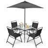 ● Wide Application: With removable umbrella, this folding patio dining set is suitable for different places, such as patio, backyard, poolside, garden and balcony, etc, allowing you to enjoy outdoor time with your friends and family. Besides, the sturdy steel frame with anti-rust surface ensures its long service time.