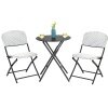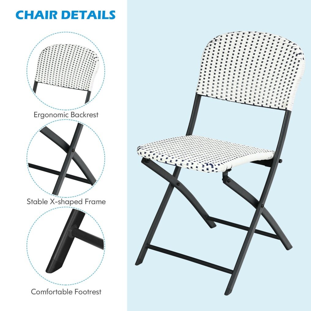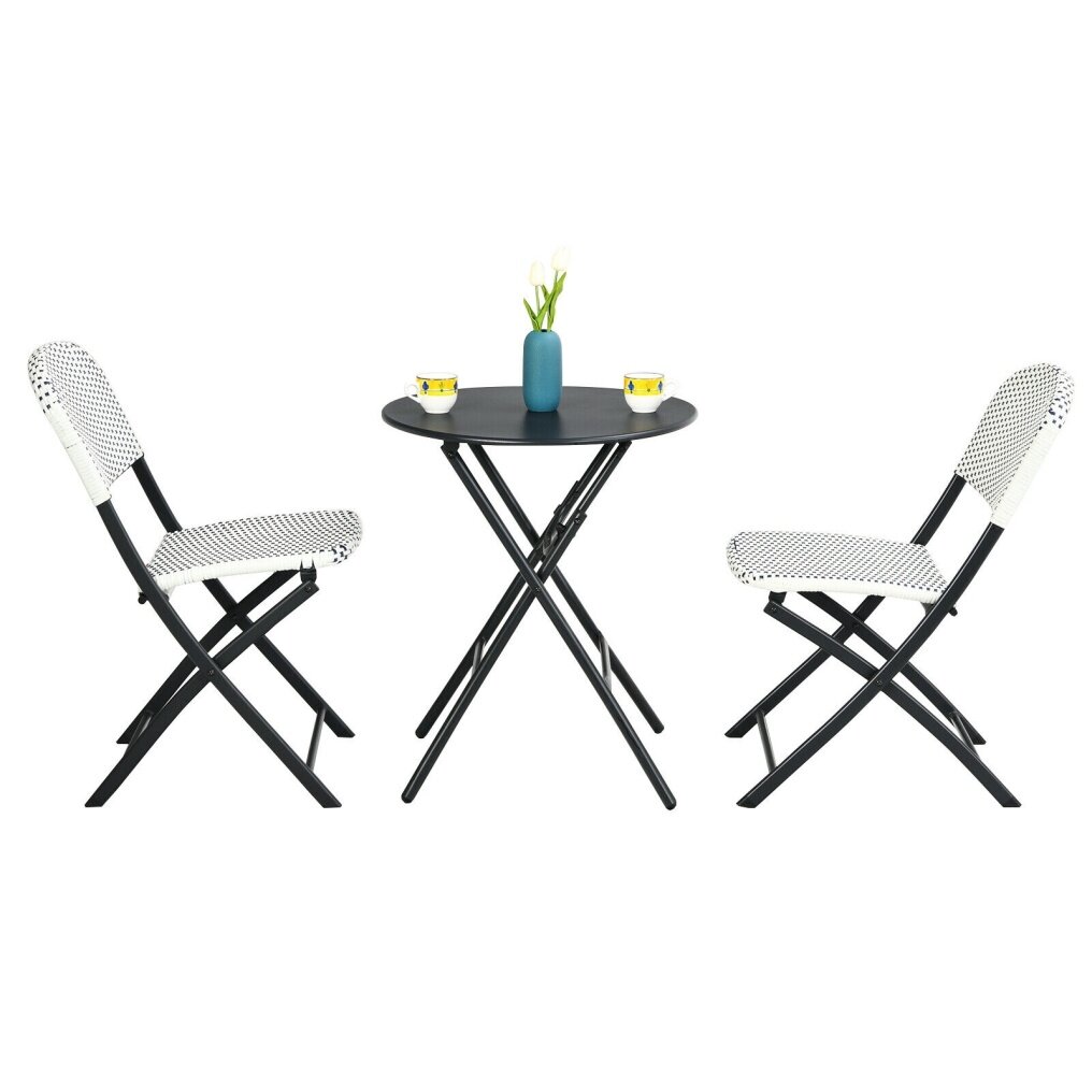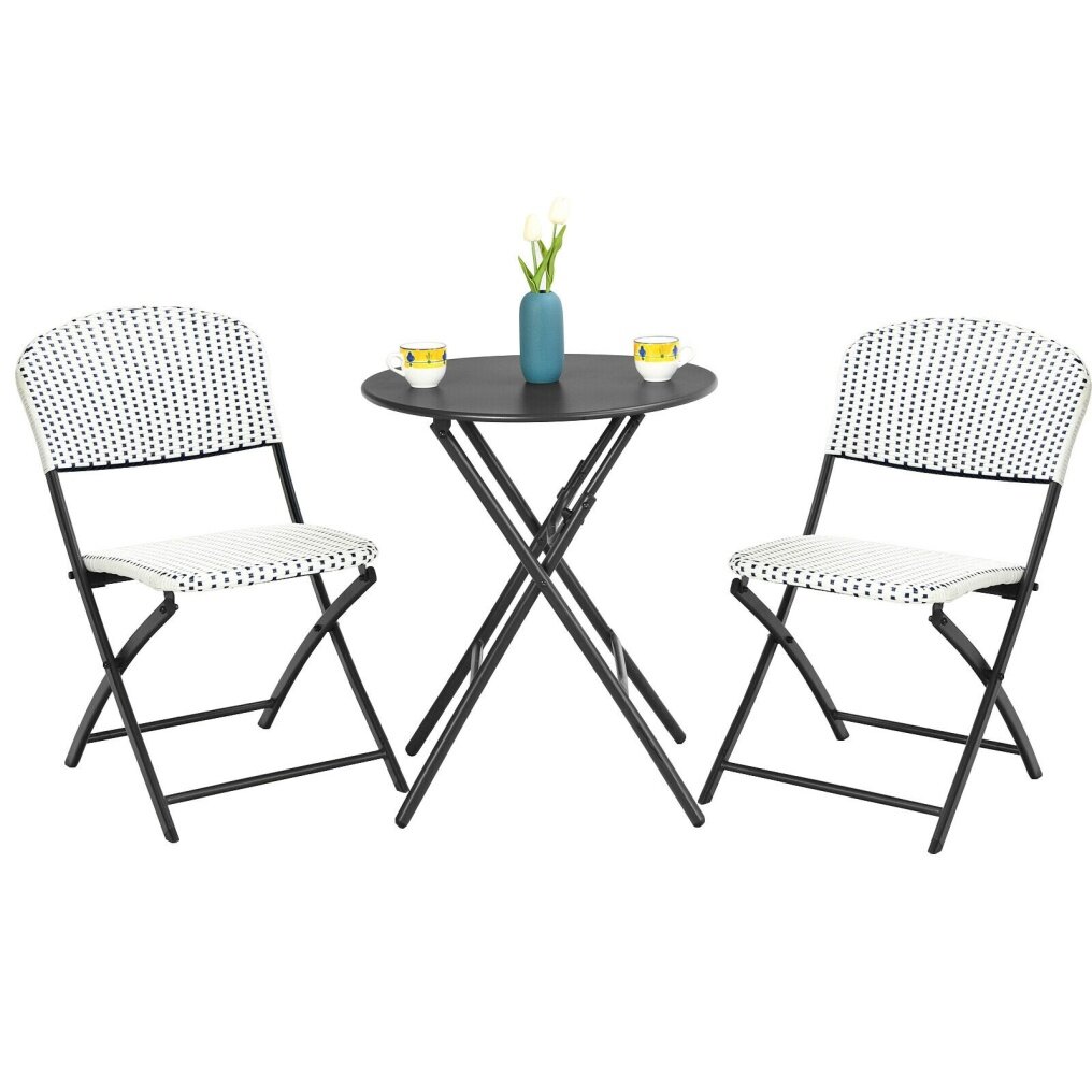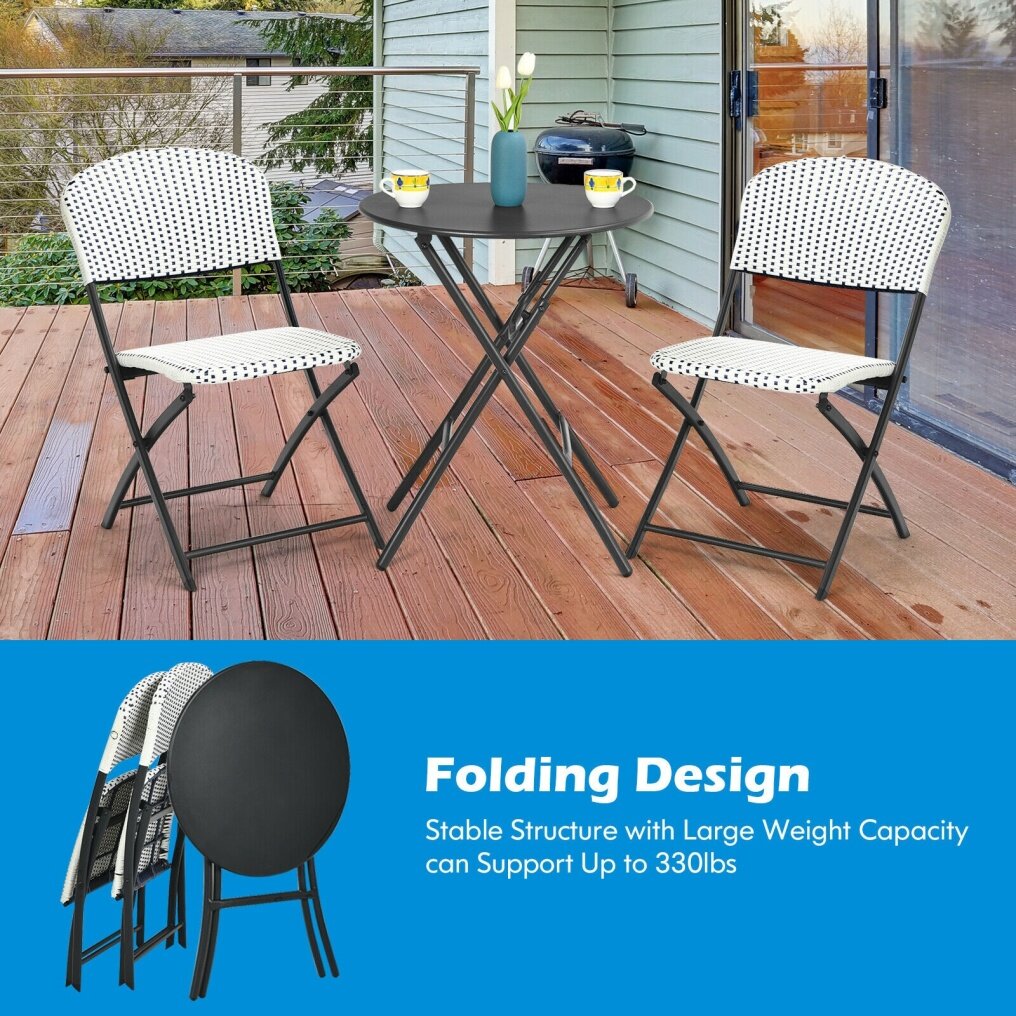 The heavy-duty steel frame provides a solid foundation for this delightful dining set. Besides, durable PE rattan ensures long-lasting use and is suitable for outdoor use. Plus, X-shaped construction and 4 anti-slip foot pads provide adequate stability. With folding design, this outdoor bistro set is convenient to store and transport. Furthermore, free installation design saves your time and effort.