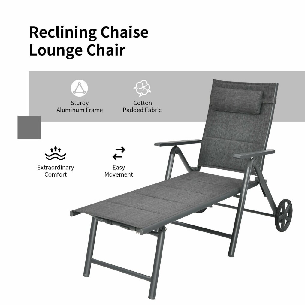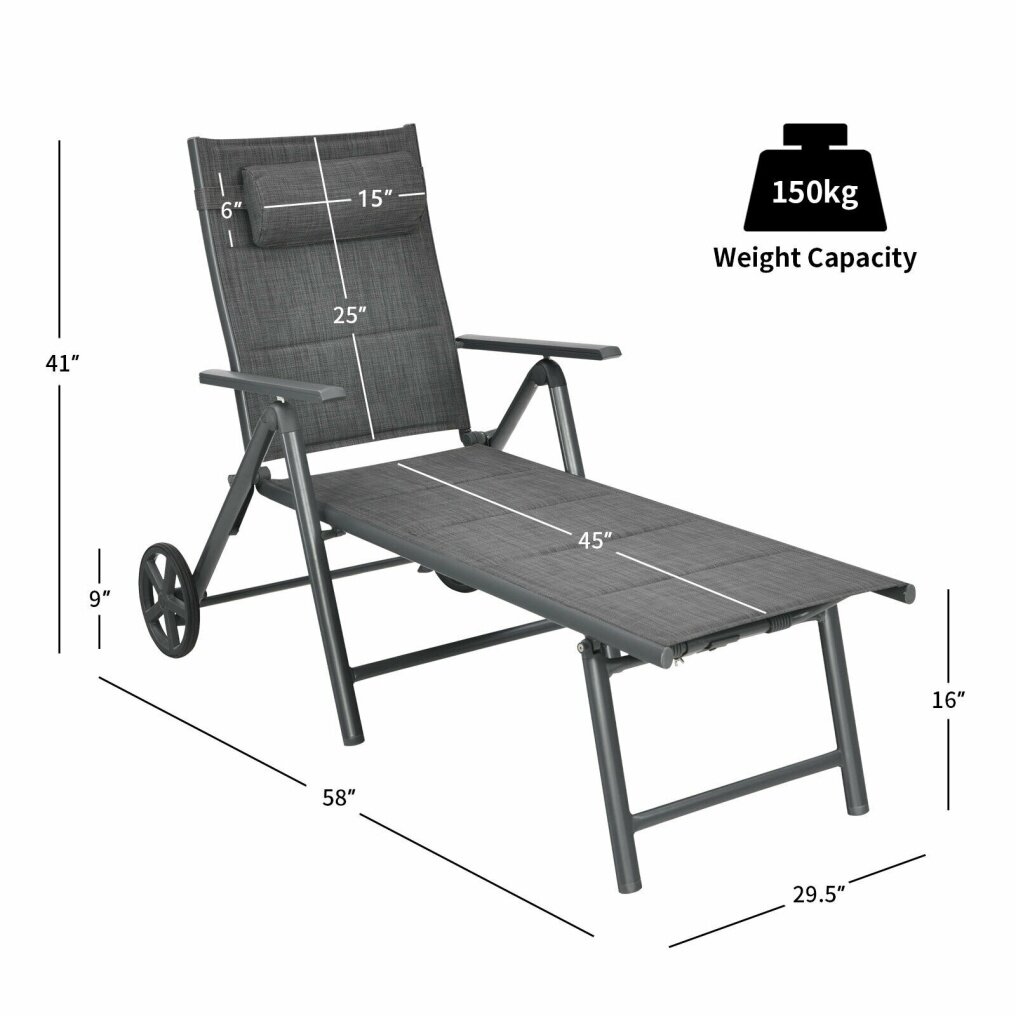 ● Sturdy Aluminum Frame: The frame of the lounge chair is made of rust-free aluminum, which is super sturdy but much lighter. And the aluminum tube resists well to deformation and crack. Moreover, the triangular structure on the two sides ensures higher stability, enabling the lounge chair to support up to 330lbs.