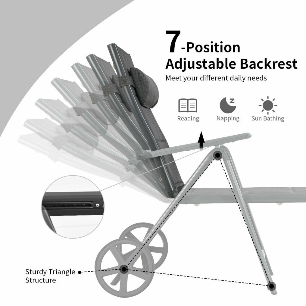 ● 7 Adjustable Positions: The backrest can be adjusted into 7 positions, satisfying your multiple daily needs. You can adjust by lifting up the armrests of both sides. And the lock under the armrests will fix the backrest in place. With this lounge chair, you can do various activities, such as reading, fishing and sunbathing.