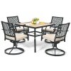 ● Sturdy Steel Structure: The main frame of the patio dining table is made of heavy-duty steel, which is resistant to deformation and abrasion. And four steel legs with curved design add to higher stability. Moreover, anti-slip footpads not only make the table stand steadily, but also protect ground from scratches.