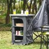 Ideal for Multiple Occasions: The multifunctional storage cabinet can not only be used indoors but also fit for various outdoor activities, such as camping, picnic, barbecue, etc. In addition, the hook and loop fasteners and hasp make it easier to fold down and set up, providing great convenience for daily use.
