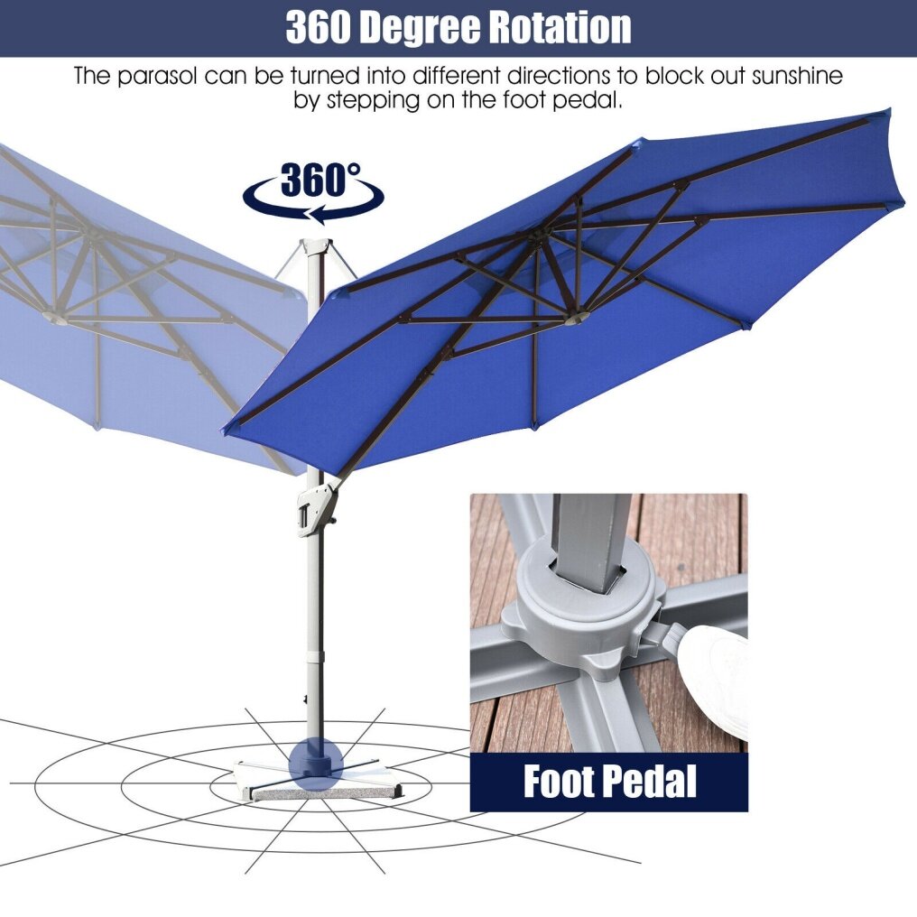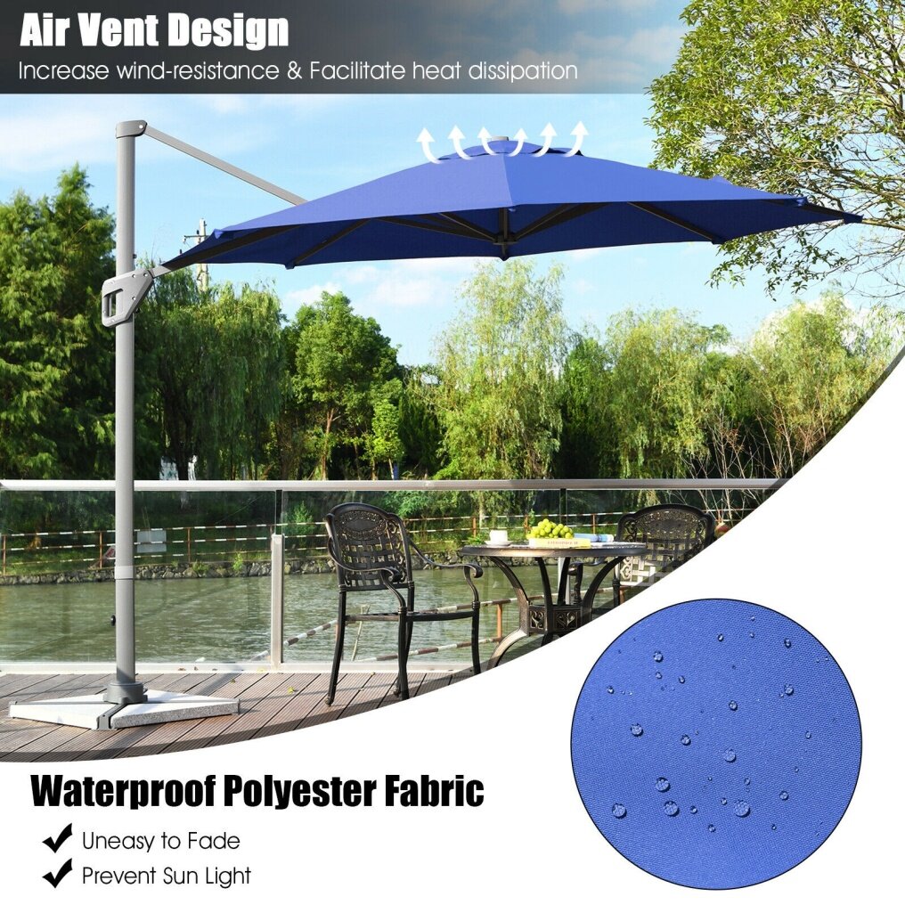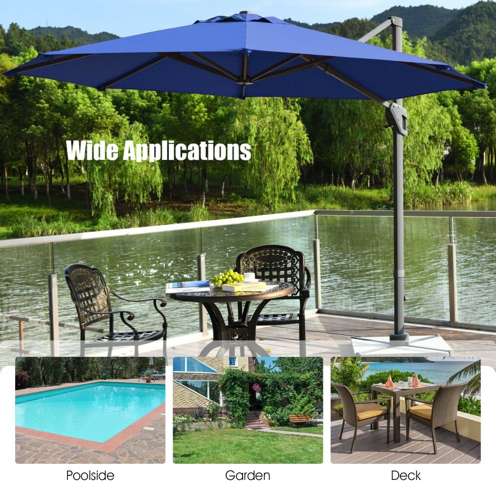 - Durable aluminum ribs offer great stability for the cantilever umbrella