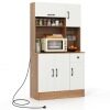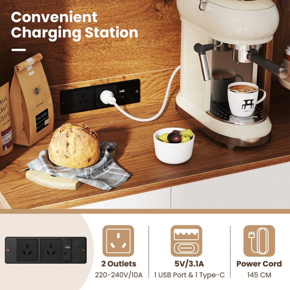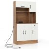 Convenient Charging Station: Stay connected while cooking or entertaining with a built-in charging station in this freestanding buffet cupboard. There are 2 outlets, 1 USB port and 1 type-C port for keeping devices powered and accessible.