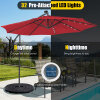 ● Large Shady Canopy with Vents: Measuring 100 sq. ft shading space, this patio hanging umbrella will offer spacious coverage for a set of outdoor furniture. In this way, you can enjoy your leisure time with friends in a beautiful garden. Featured with a vent, this offset umbrella enhances air circulation and using stability.