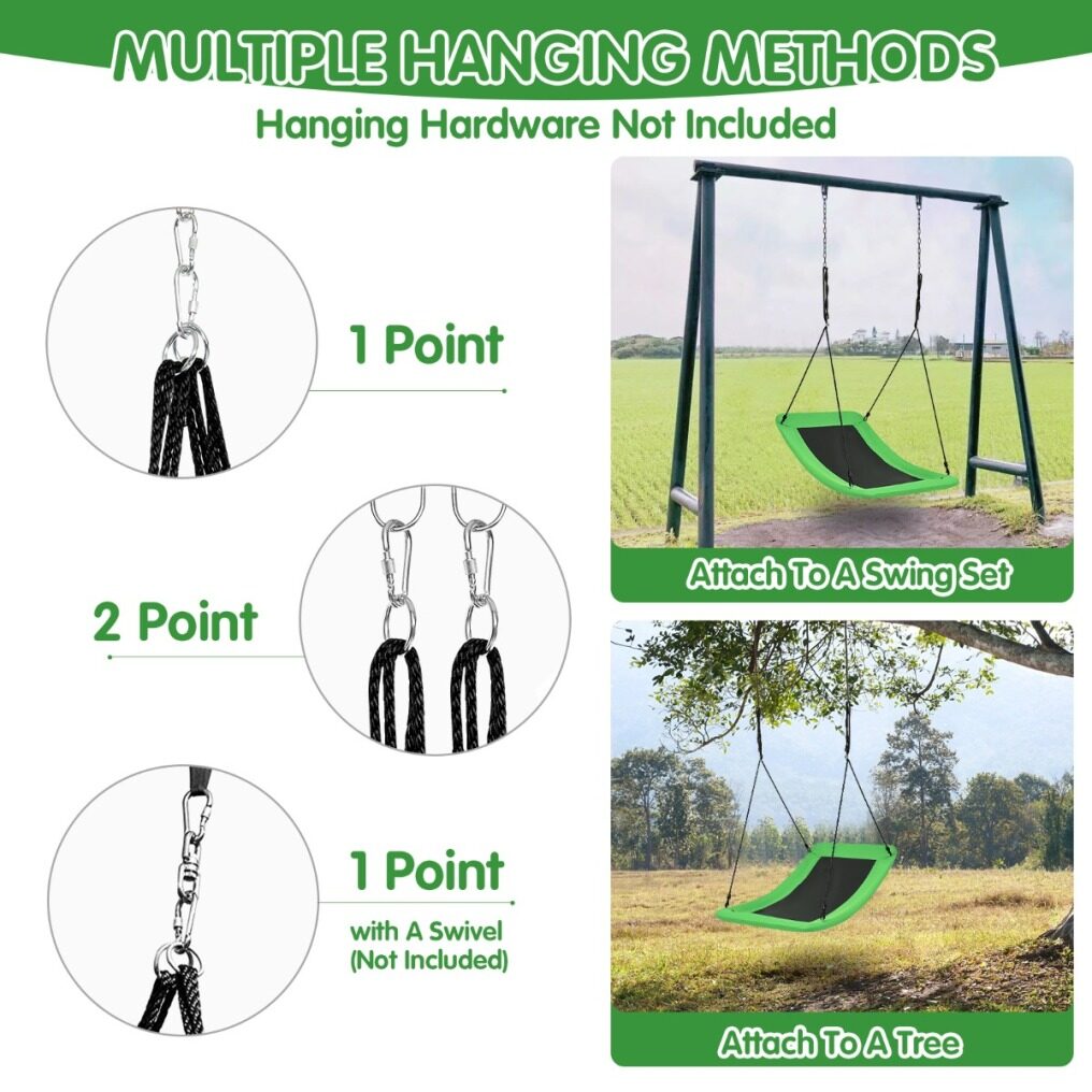 Endless Fun for Kids: We design it as an all-directional curved swing, which is different from other swings and can bring your kids endless fun. You can sit, read, stand or surf on it, adding more fun to your backyard adventure. Thanks to its bright colours, the swing can attract the attention of both kids and adults. With the large swing, you and your family can fully enjoy the joy of swinging.