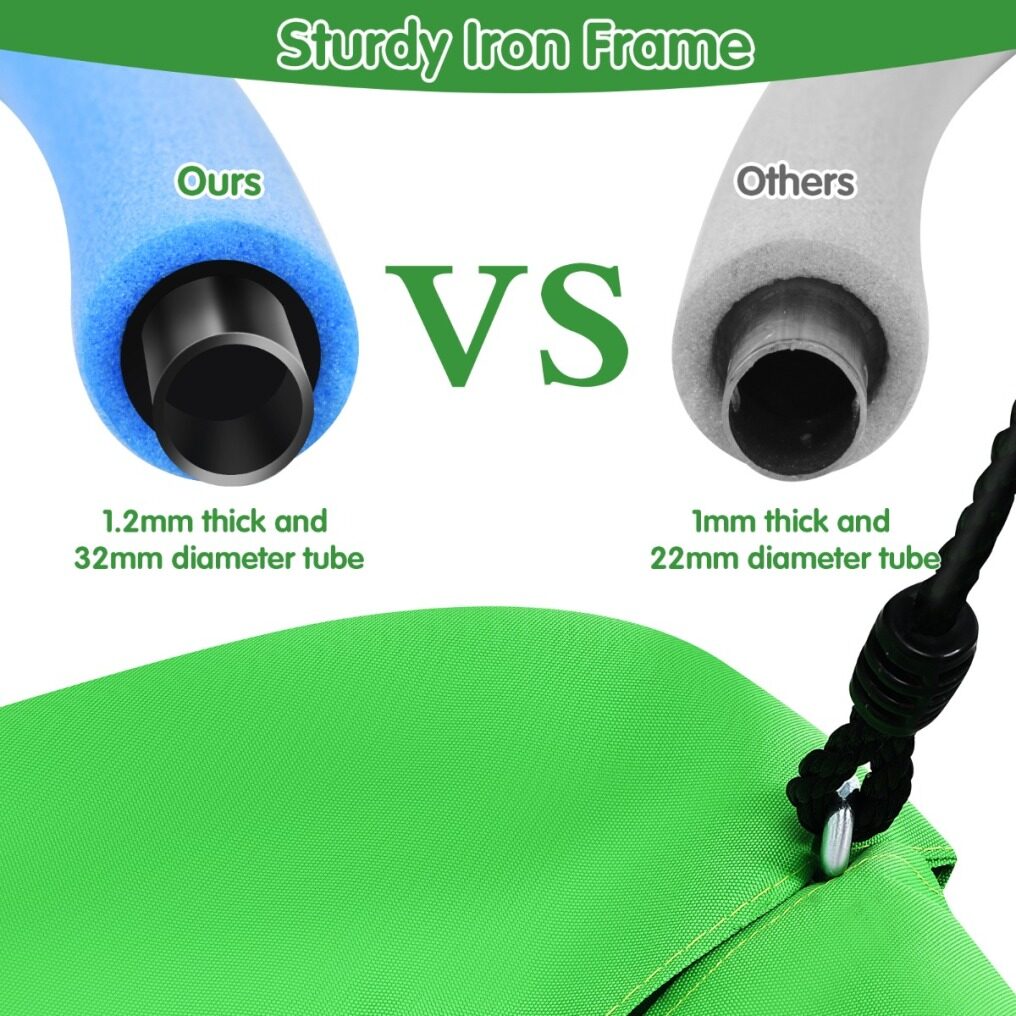 Safe and Durable Swing: The curved tree swing is made of heavy-duty galvanized pipe, PP jump mat and premium 900D oxford cloth, which extends its service time for several years. In addition, the solid steel frame makes it stable enough to hold up to 300kg. Foam-padded tubes make them safe to use. You don’t need to worry about kids’ safety when they play on the nest swing.