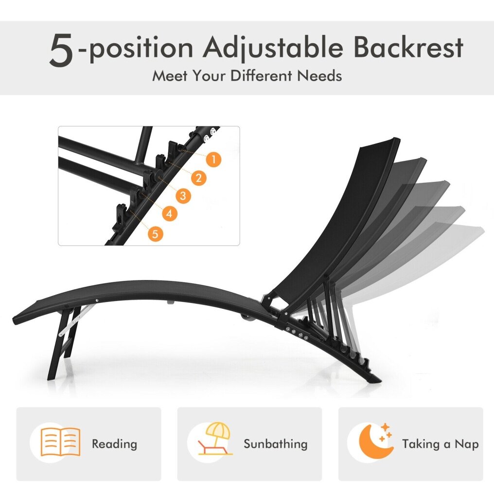 Upgraded 5-position Adjustable Backrest: Featuring a 5-position adjustable backrest, this outdoor chaise lounge set allows you to find the most comfortable angle to meet your different needs. Therefore, you can sit up for reading or just lie down for sunbathing and taking a nap. Meanwhile, the streamlined curved design brings optimal comfort for long time lying.