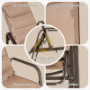 Designed with modern style and compact size, this outdoor conversation set not only brings out the perfect taste of life but also fits the limited places, such as patio, porch, balcony, etc. In order to make the sitting experience more comfortable, the backrest and headrest of these 2 dining chairs can be adjusted based on your different needs. In addition, the tempered glass coffee table with adjustable anti-slip foot pads is able to support your items firmly. And the anti-rust steel frame and quick-drying fabric make this bistro set more durable and stable outdoors. After use, the 2 chairs can be stacked together to save your space. Please fold the backrest before stacking.