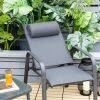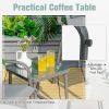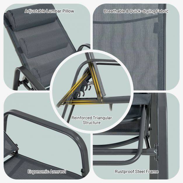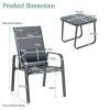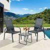 Designed with modern style and compact size, this outdoor conversation set not only brings out the perfect taste of life but also fits the limited places, such as patio, porch, balcony, etc. In order to make the sitting experience more comfortable, the backrest and headrest of these 2 dining chairs can be adjusted based on your different needs. In addition, the tempered glass coffee table with adjustable anti-slip foot pads is able to support your items firmly. And the anti-rust steel frame and quick-drying fabric make this bistro set more durable and stable outdoors. After use, the 2 chairs can be stacked together to save your space. Please fold the backrest before stacking.