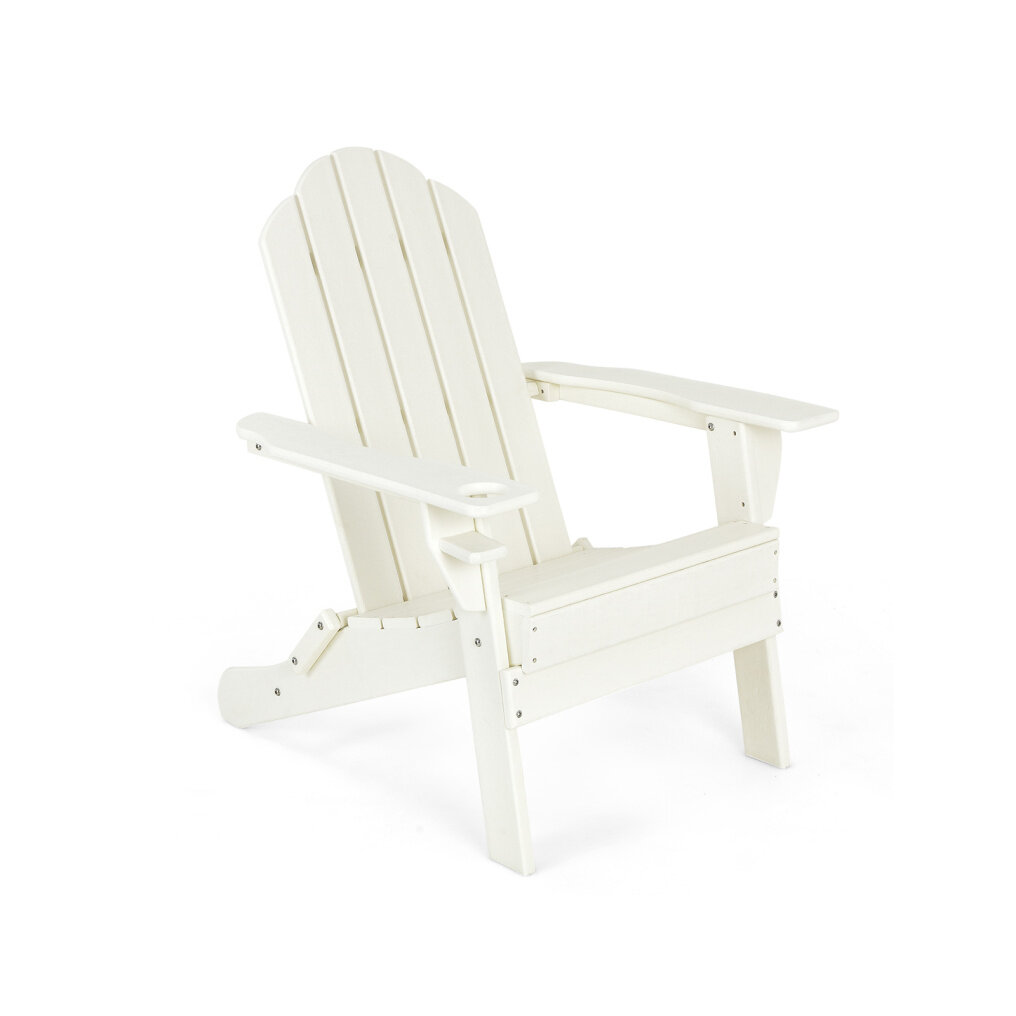 With ergonomic design and reinforced triangular structure, this fire pit chair brings optimal comfort while supporting you safely and firmly. Likewise, the built-in cup holder allows you to put your drinks conveniently. When you use it outdoors, the weather resistant PE material and premium 304 stainless steel screws ensure the durability of this patio chair. And you can paint the surface into another color to fit your outdoor decoration. If there is dirt on this Adirondack chair, just clean it with water or soap. When out of use, just fold this outdoor chair for space-saving.
