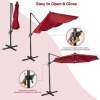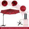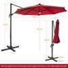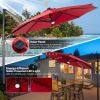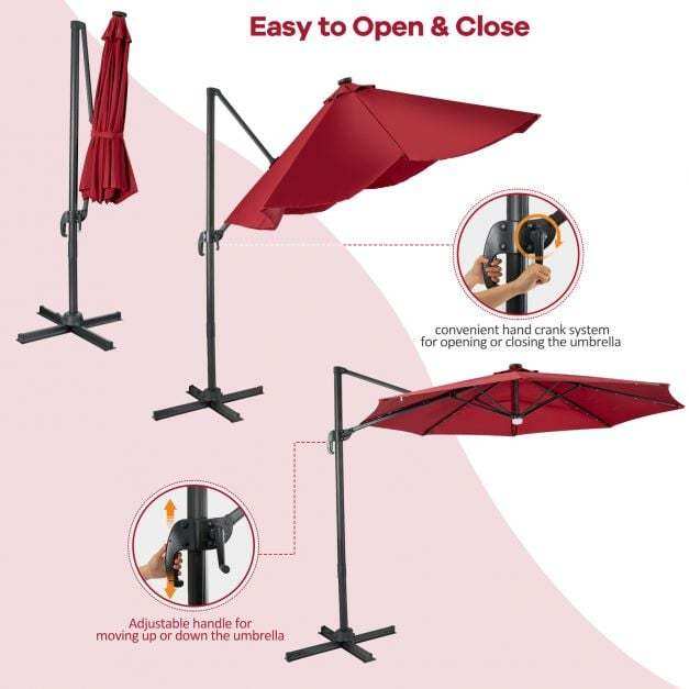 Energy-Efficient Solar-Powered LED Light: The lighted patio cantilever umbrella is designed with 28 LED lights on the ribs and a hub light for extra light and ambiance, helping lighting up your relaxing summer lights. Moreover, it is powered by an energy-saving solar panel that collects the solar energy during the day and lasts for 4 hours after fully charged.
