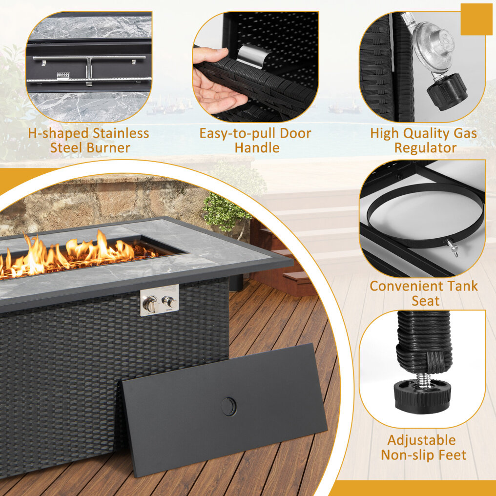 ● Extra-Large and Elegant Tabletop: The tabletop measures up to 52" wide, which is much larger than other fire tables. Moreover, the marble tabletop looks quite elegant and resists well to fade and high temperature. Also, volcanic rocks are provided to place on the stainless-steel burner. Note: Please do not completely cover the burner with volcanic rocks when igniting, and keep volcanic rocks always dry to prevent splashes when using.