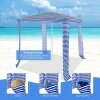 Our 202 x 202x 233 cm portable beach cabana provides a large shaded area for you to enjoy leisure time with your family or friends, and there exists a detachable sidewall to provide extra shade and privacy, meeting your multiple needs. The beach canopy is made of sun-protection and waterproof polyester fabric and supported by a heavy-duty steel frame to provide strong support, ensuring long-lasting outdoor use. Moreover, our canopy is easy to set up, even for one person, and you can store it in a carrying bag when not in use. The compact and lightweight carrying bag allows you to transport and store it effortlessly. It can be set up almost anywhere such as on the sand, grass, or in the backyard as a pool cabana. But please firmly fix the extension pole with the anchor (insert into the sand, grass, or weighted base) and add heavy items to the sandbags for ensuring great stability.