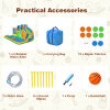 It is made of heavy-duty 420D+840D Oxford cloth, which is waterproof and tear-resistant to support kids for long time use. And while your little ones are playing, you can also take a rest since the ventilated mesh walls and enhanced handrails will protect kids. What's more, the package includes necessary accessories to for easy setup and storage. Just unfold the product, connect it to a blower (excluded) and fix it by ground stakes, you can set up a fun water park in the yard.