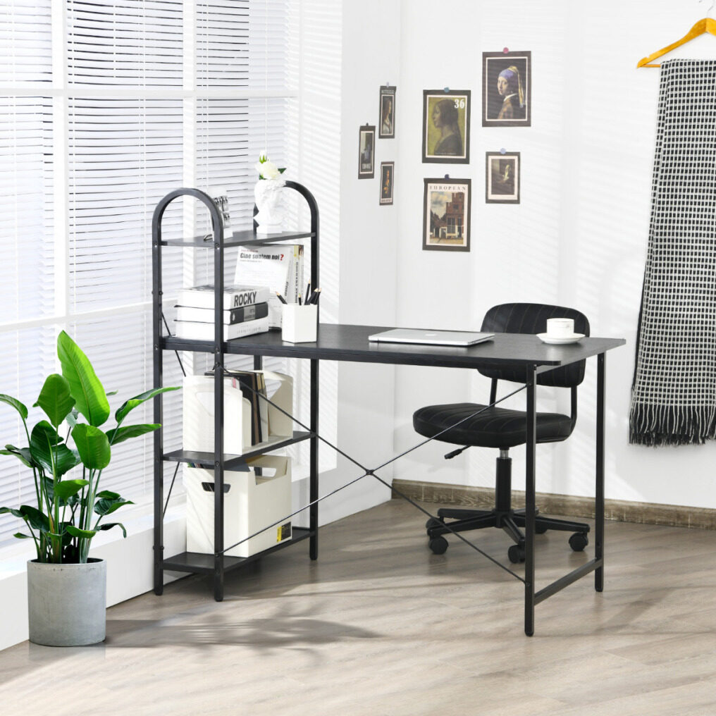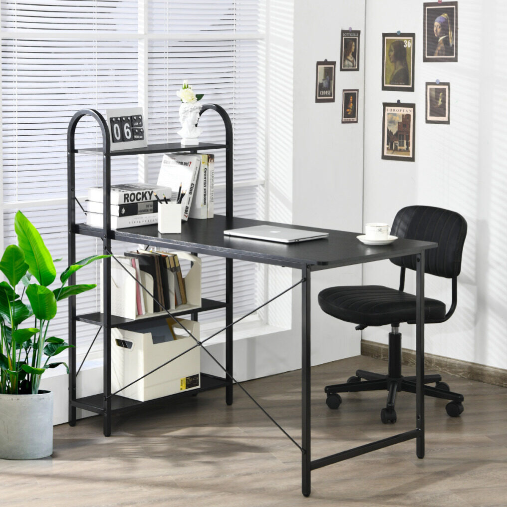 Great Storage Helper: Apart from a wide desktop, the writing desk is also equipped with a 4-tier storage shelf. You can sort and place items on the shelf in a customizable manner. Besides, the storage shelf is within easy reach, so you can conveniently get what you need at busy work.