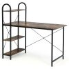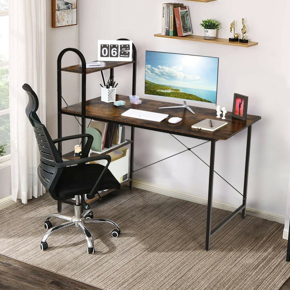 Designed with the metal construction, the computer desk is excellent in sturdiness, which shows in the overall weight capacity up to 198 lbs. The dimension of the desktop is 23.5" x 48", which is spacious enough for a common computer and other items. On the side, there is a 4-tier open shelf where you can store many office supplies. As the shelf is reversible, you can freely place it in the right and left corners. Therefore, it is very suitable for small rooms.